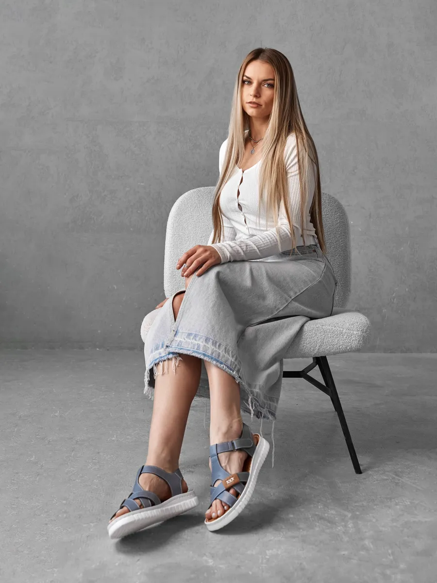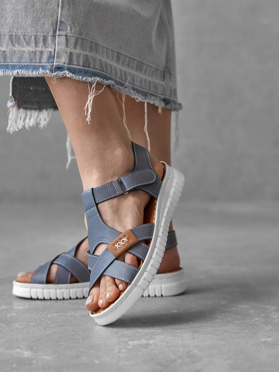 Изготовленные из мягкой и прочной натуральной кожи, босоножки обеспечивают естественную вентиляцию стопы, комфорт при ходьбе и долгий срок службы. Плетёный дизайн с открытой пяткой придают образу лёгкость и изящность. Синий цвет делает их универсальными — они одинаково хорошо сочетаются с платьями, сарафанами, джинсами и шортами.