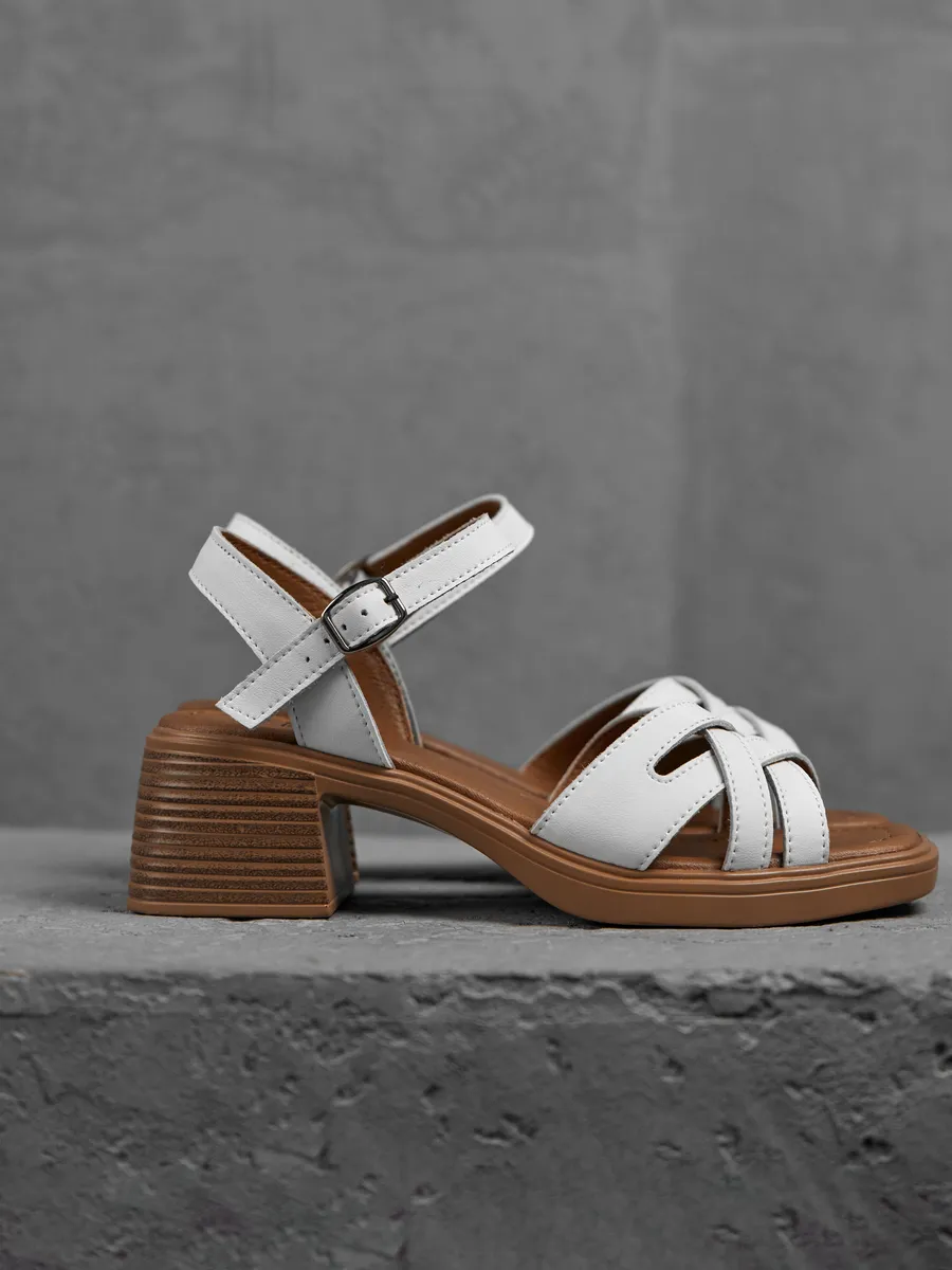 Модель выполнена в трендовом белом цвете, который гармонирует с любой палитрой гардероба — от ярких летних оттенков до спокойных нюдовых или бежевых тонов. Это делает их универсальными как для повседневной носки, так и для особых случаев. Особенно выразительно смотрится плетёный кожаный верх, добавляющий изделию стильный акцент.