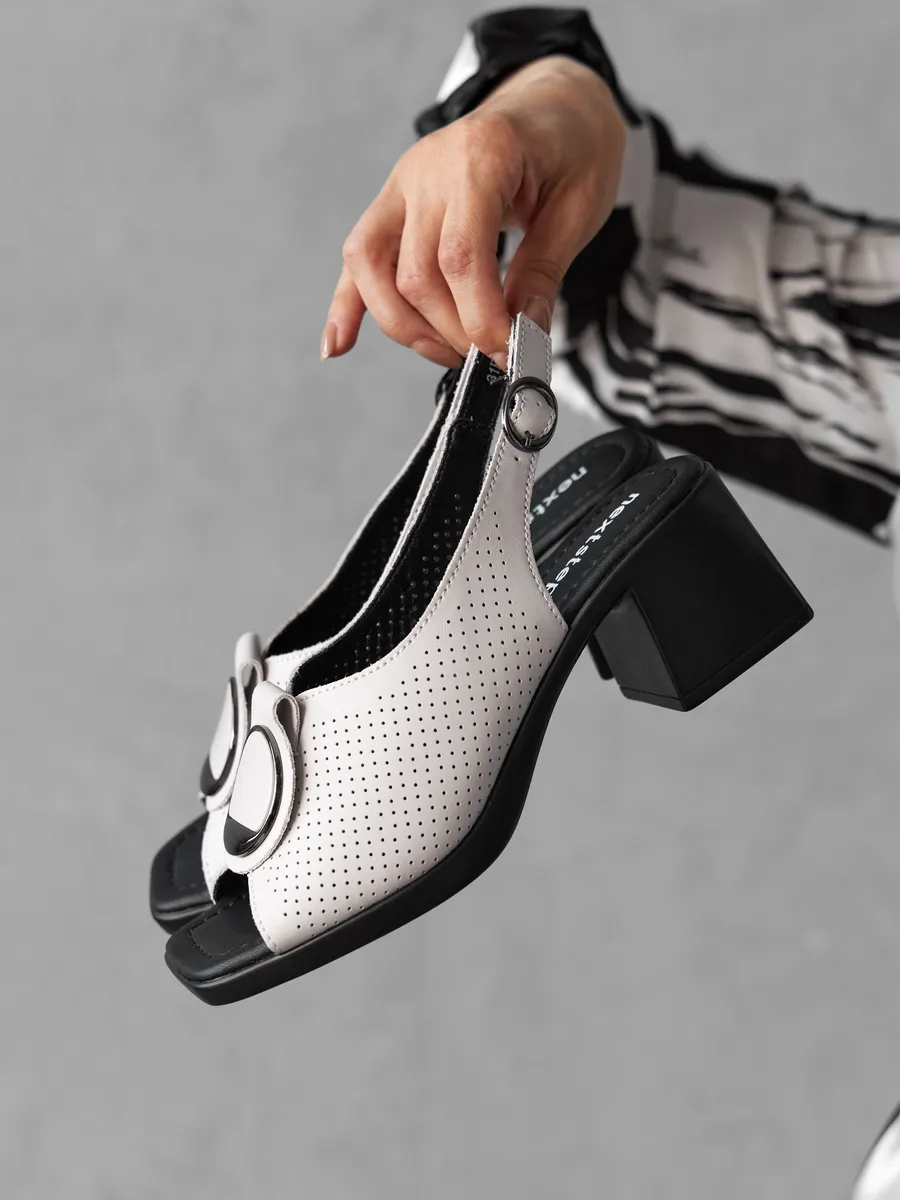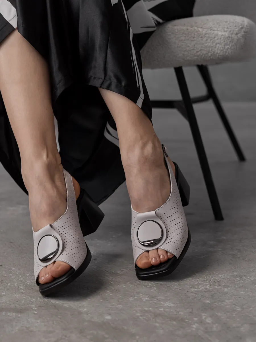 Модель идеально подходит для тёплых дней: открытые детали обеспечивают вентиляцию, а мягкая кожаная стелька гарантирует комфорт с утра до вечера. Благодаря классике формы и современным модным акцентам, эти босоножки — находка для тех, кто хочет чувствовать себя уверенно и выглядеть безупречно.