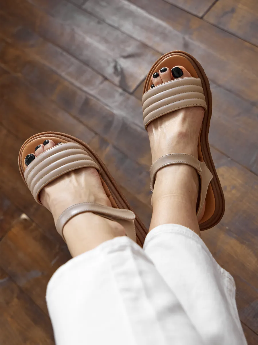 Лето — время, когда хочется наслаждаться лёгкостью и свободой в каждом движении. Женская обувь должна быть не только красивой, но и удобной, ведь комфорт играет ключевую роль в повседневной жизни. Летние босоножки из натуральной кожи на танкетке — это идеальный выбор для женщин и девушек, которые ценят стиль, качество и модные тенденции 2025 года. Эти кожаные босоножки созданы для тех, кто стремится к гармонии между изысканностью и удобством. Лаконичный дизайн с открытой пяткой и носком придаёт модели лёгкость и обеспечивает вентиляцию в жаркие дни. Регулируемый ремешок на застёжке делает посадку обуви максимально удобной, не создавая давления и натираний. Этот элемент не только добавляет элегантности модели, но и позволяет регулировать степень фиксации для идеального прилегания к ноге. Благодаря танкетке и амортизирующей подошве босоножки обеспечивают естественное движение стопы, делая походку лёгкой и уверенной. Мягкая стелька создаёт дополнительный комфорт, поддерживая свод стопы и предотвращая усталость. Такая обувь станет незаменимой в гардеробе, добавляя нотку свежести и элегантности любому образу. Эта модель сочетает в себе классическую изысканность и современные модные тенденции, что делает её подходящей как для повседневных прогулок, так и для особых случаев. Нарядные босоножки станут отличным выбором для работы в офисе, встреч с друзьями, романтического ужина или летнего путешествия. Добавьте в свой гардероб женские летние босоножки из натуральной кожи и наслаждайтесь лёгкостью, стилем и удобством! Независимо от того, куда вы направляетесь – на прогулку, деловую встречу или вечеринку – эта обувь станет вашим стильным и комфортным спутником.