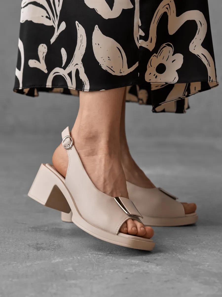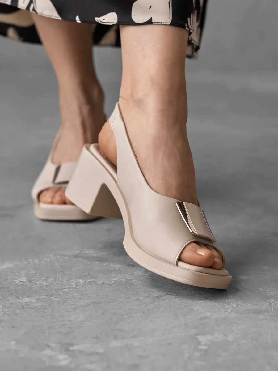 Бежевый цвет — один из самых востребованных летом, он легко сочетается с одеждой в светлых, пастельных и даже ярких оттенках. Эти женские слингбэки великолепно смотрятся с лёгкими платьями, юбками и деловыми костюмами, дополняя как офисный, так и праздничный образ.