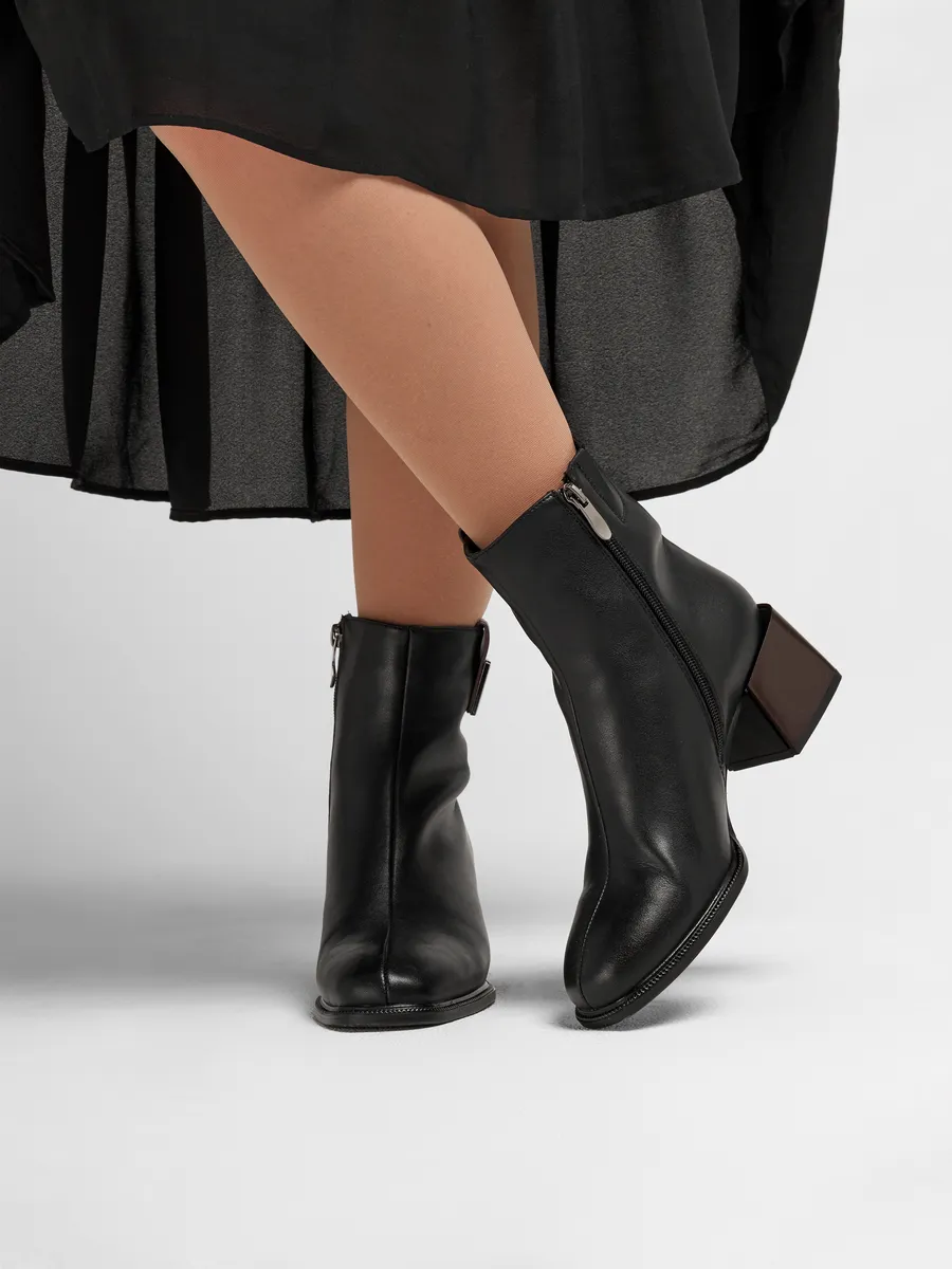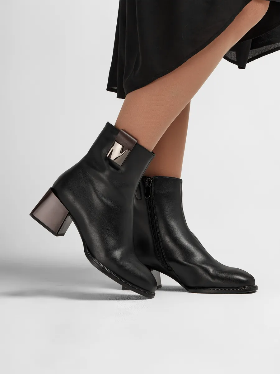 Кожаная поверхность устойчива к износу и не требует сложного ухода, а молния на внутренней стороне делает обувь удобной для узкой и широкой стопы, облегчая процесс надевания. Эти полусапожки отлично сочетаются с платьями, юбками, джинсами и деловыми костюмами, добавляя в образ шарм и элегантность.