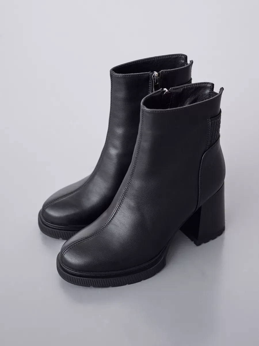 Благодаря натуральной коже, ботильоны не только выглядят стильно, но и обладают долговечностью и устойчивостью к внешним воздействиям. Утепленные шерстяной подкладкой, они обеспечивают тепло и комфорт в морозные дни, что делает их идеальными для зимы. Специальная обработка материалов делает обувь непромокаемой, что особенно важно в условиях влажной и снежной погоды. Боковые молнии облегчают процесс обувания и обеспечивают идеальную посадку.
