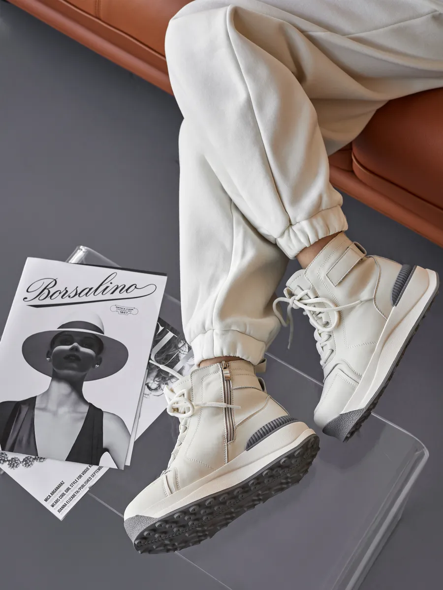 Каждая пара обладает стильной конструкцией с широкой областью для ноги, что важно для повседневного ношения в городе или за городом. Непромокаемая обувь гарантирует сухость даже при влажной погоде. Платформа добавляет практичность, облегчая ходьбу по снегу или льду благодаря продуманному рельефу. Прочный шов и дополнительная стабилизация акцентируют внимание на пятке.