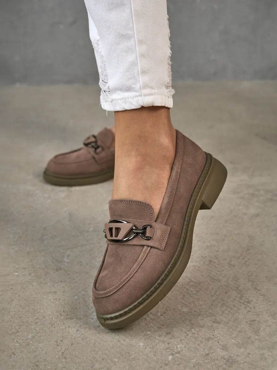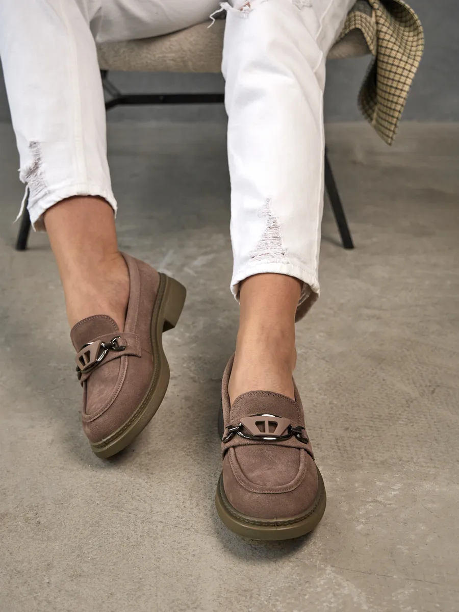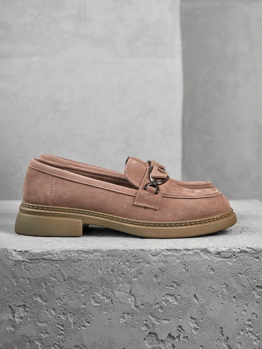 Наши лоферы выполнены из высококачественной натуральной замши, что обеспечивает долговечность и стильный внешний вид. Модная и классическая модель представлена в интересном розовом цвете с серым отливом на низком каблуке и платформе. Стелька с ортопедическим эффектом и удобная подошва гарантируют максимальный комфорт при ходьбе, даже на протяжении длительного времени.