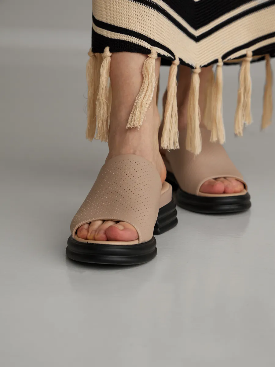 Лёгкая конструкция обеспечивает удобную посадку даже для широкой стопы и проблемных ног, снижая нагрузку и предотвращая дискомфорт при длительной носке. Подошва на платформе или танкетке дарит дополнительную амортизацию, что делает эту обувь идеальным вариантом для длительных прогулок, рабочих смен, путешествий или отдыха на пляже.