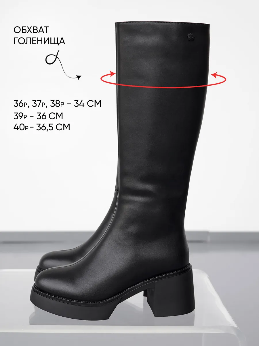 Обхват голенища с 36 размера по 38 примерно 34 см, в 39 около 36 см, в 40 примерно 36,5 см.