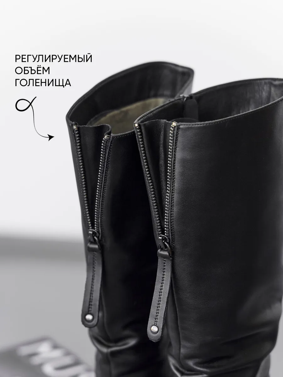 Сапоги становятся отличным решением для девушек с полной или увеличенной полнотой ноги — модель подходит даже владельцам проблемных ступней благодаря широкому голенищу в виде трубы. Ведь главное — комфорт вне зависимости от ситуации.