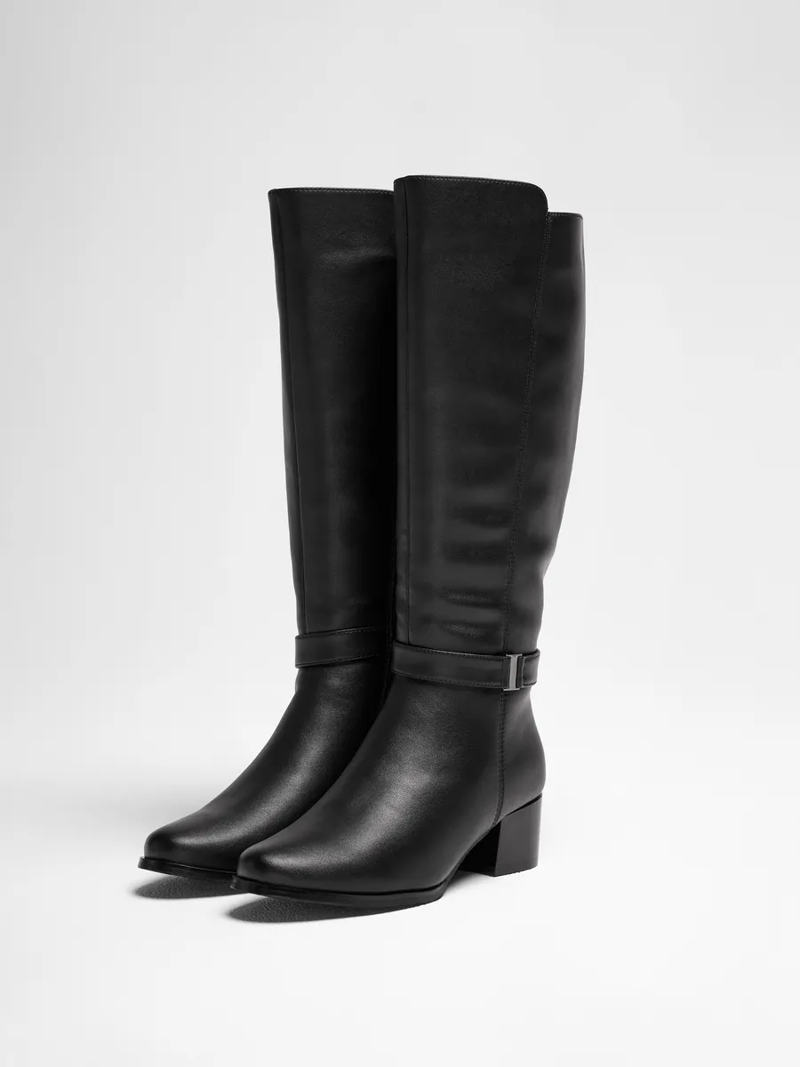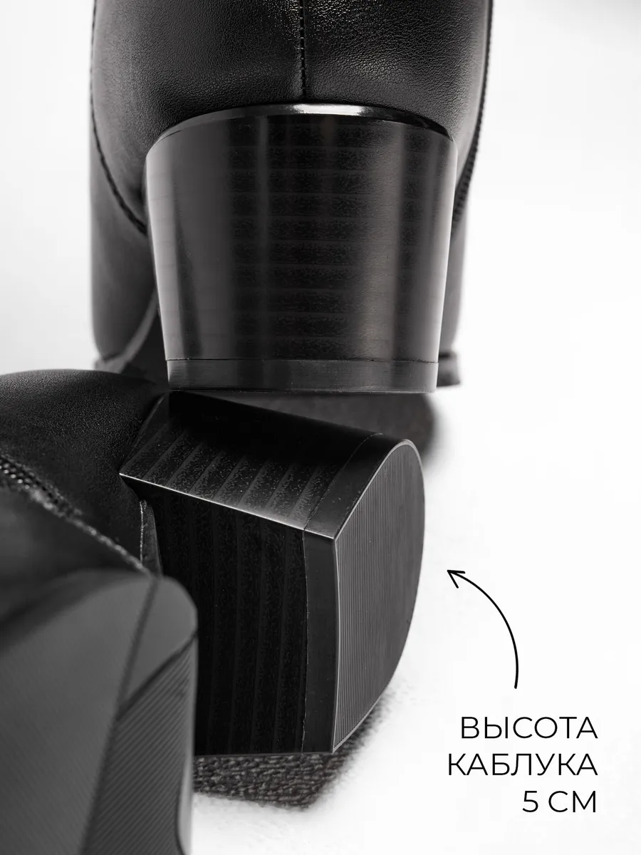 Сапоги имеют длинное голенище, что придаёт им изысканный вид. Они подойдут для проблемных стоп. Классический чёрный цвет делает их универсальными и подходящими для любого наряда — будь то повседневный или праздничный. Теплая съемная шерстяная стелька с ортопедическим эффектом и утеплённая подкладка обеспечивают комфорт и тепло даже в самые холодные дни.