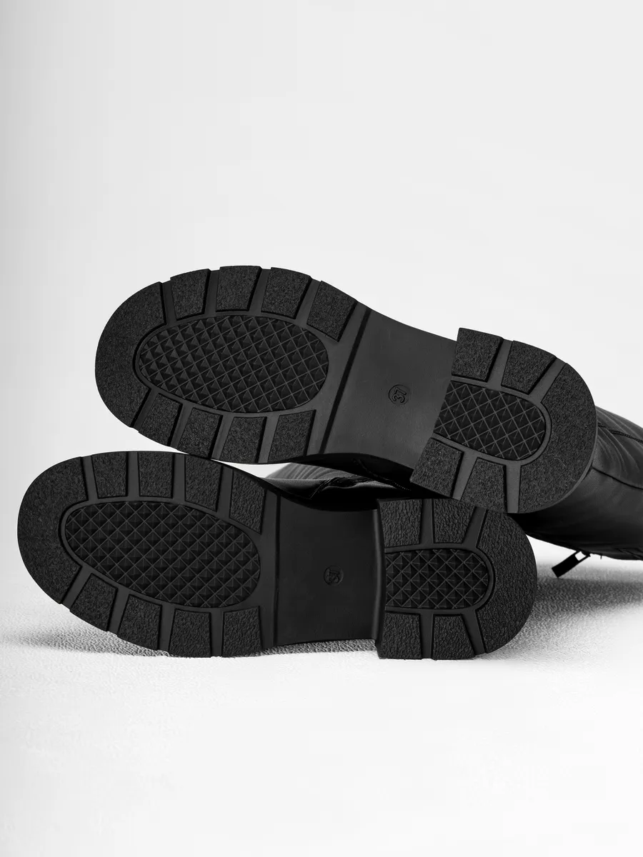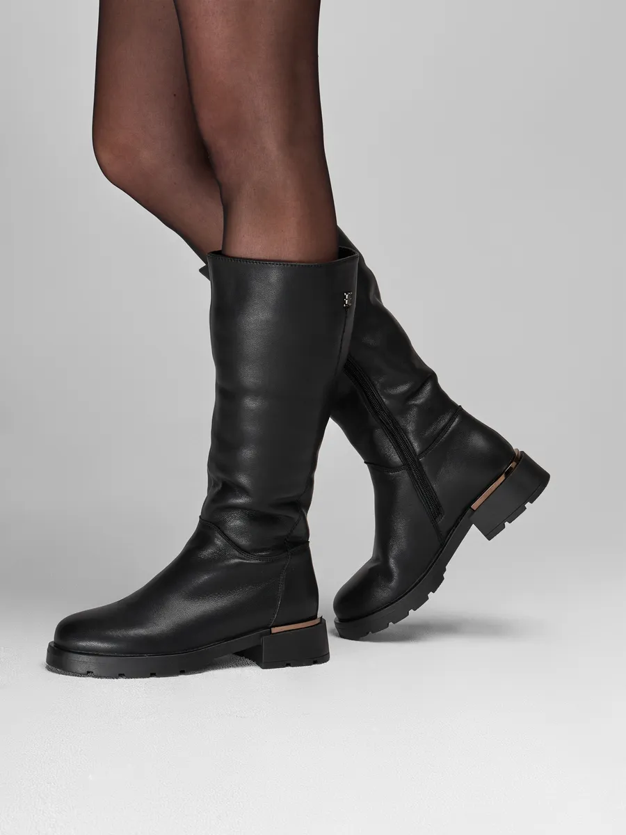 Сапожки на низком каблуке гарантируют устойчивость на зимних дорогах, а удобная молния облегчает надевание и снятие. Эти сапоги - классика зимнего сезона 2025 года.