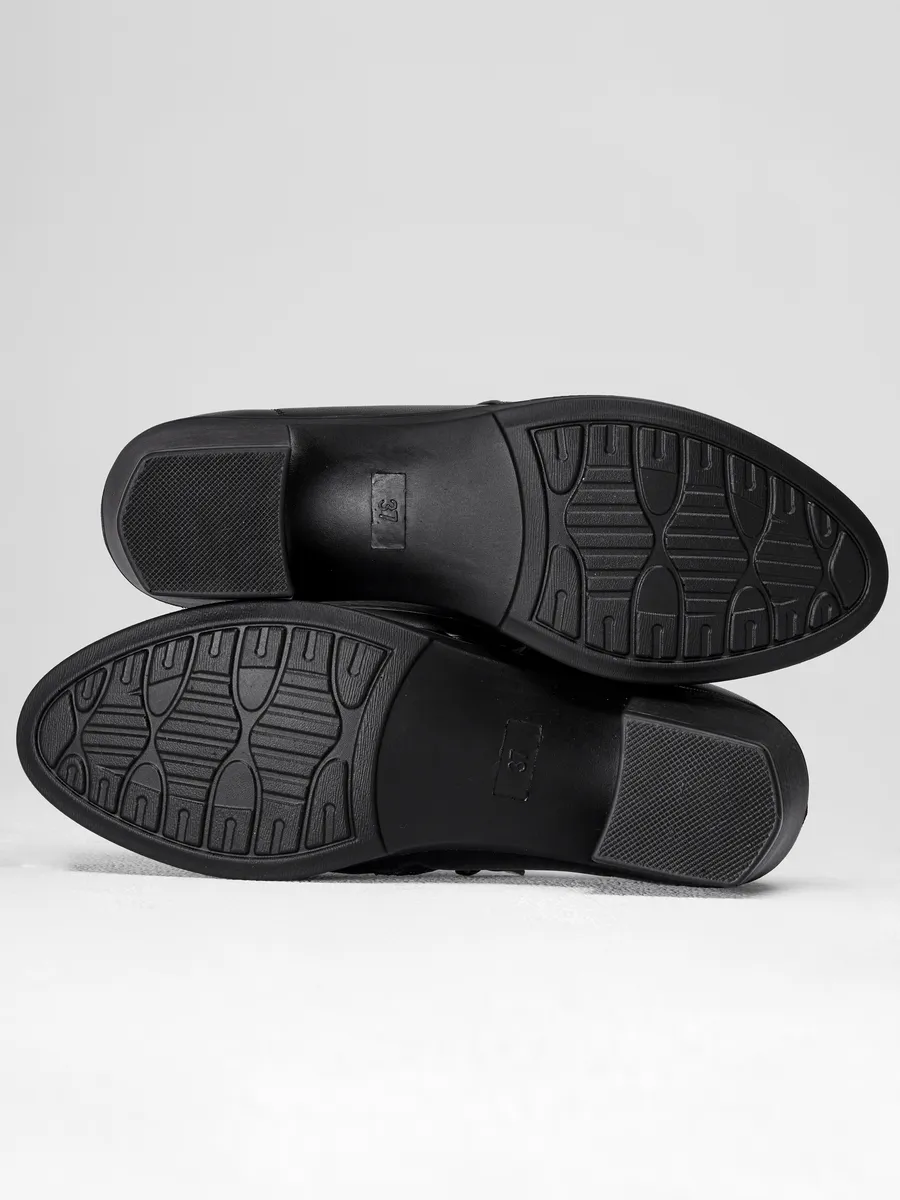 Эти туфли сочетают модные тренды 2025 года с функциональностью. Устойчивый толстый каблук обеспечивает удобство при ходьбе. Внутренняя стелька с ортопедическим эффектом адаптируется под форму стопы, снижая нагрузку и предотвращая усталость даже при длительном ношении.