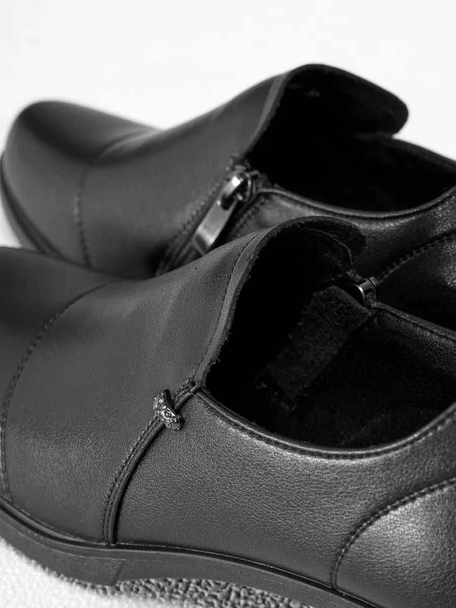 Эти туфли женские осенние на низком каблуке из натуральной кожи станут незаменимой частью вашего гардероба, обеспечивая элегантность и комфорт для любого сезона. Выполненные в классическом чёрном цвете, они идеально подходят для весны, осени 2025 года. Благодаря сочетанию практичного дизайна и высококачественных материалов, эти туфли легко впишутся в любой образ, будь то деловой, повседневный или праздничный.