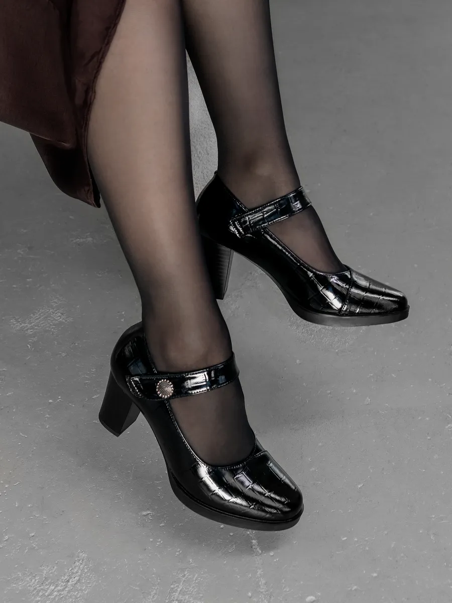 Наши туфли изготовлены из натуральной кожи, что гарантирует долговечность и стильный блеск. В коллекции представлены модные и классические модели, включая черные лакированные туфли на устойчивом каблуке. Легкие и удобные, они обеспечат вам комфорт при ходьбе, даже на протяжении длительного времени.