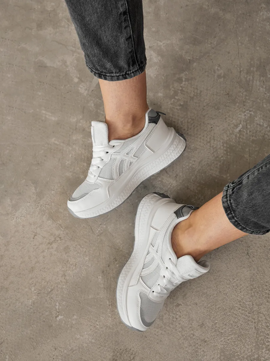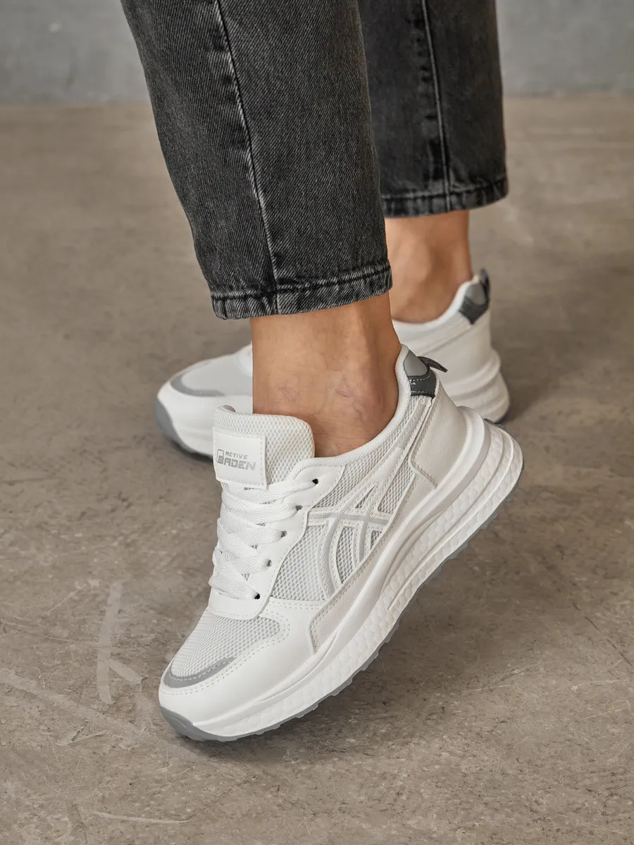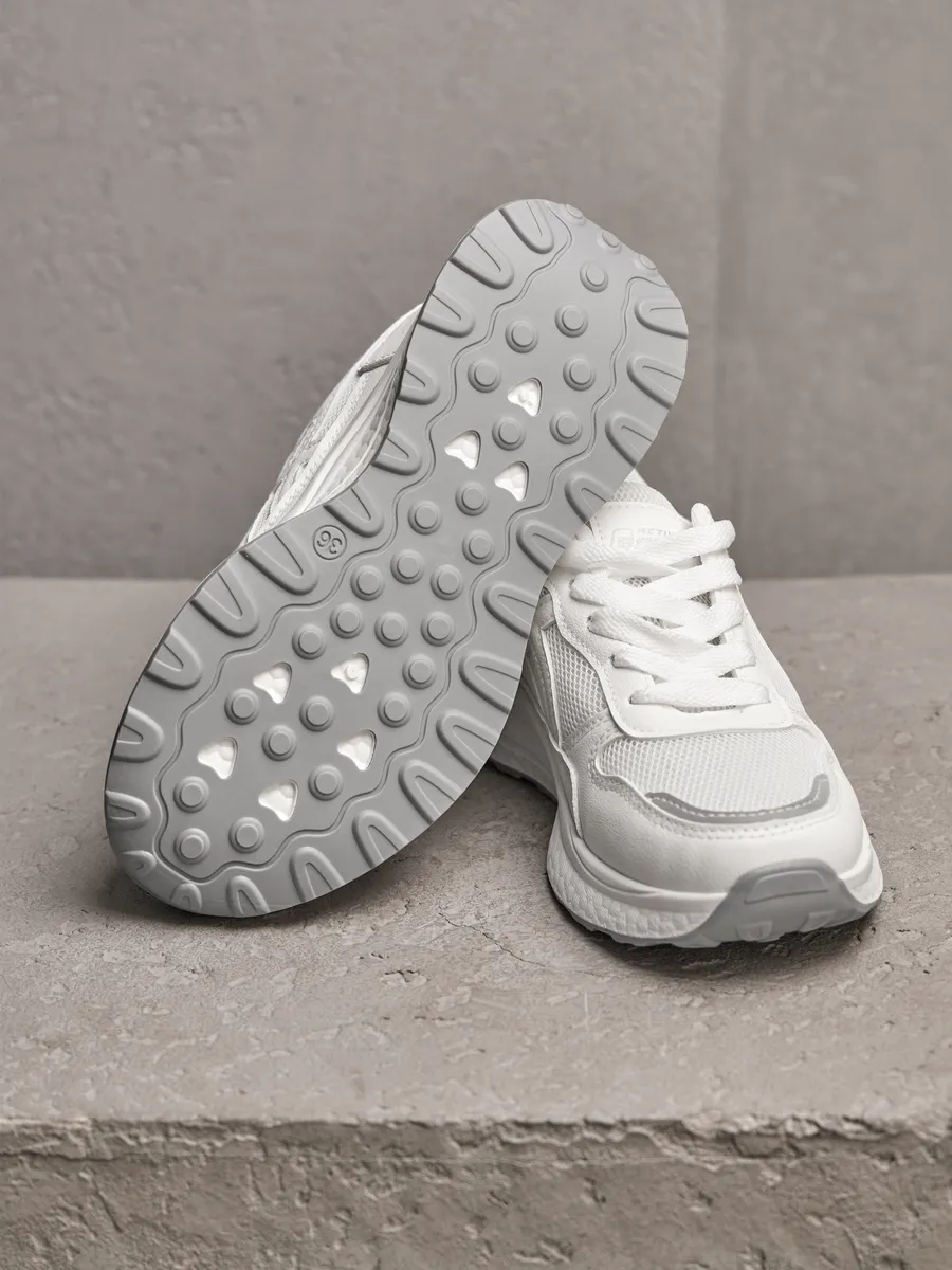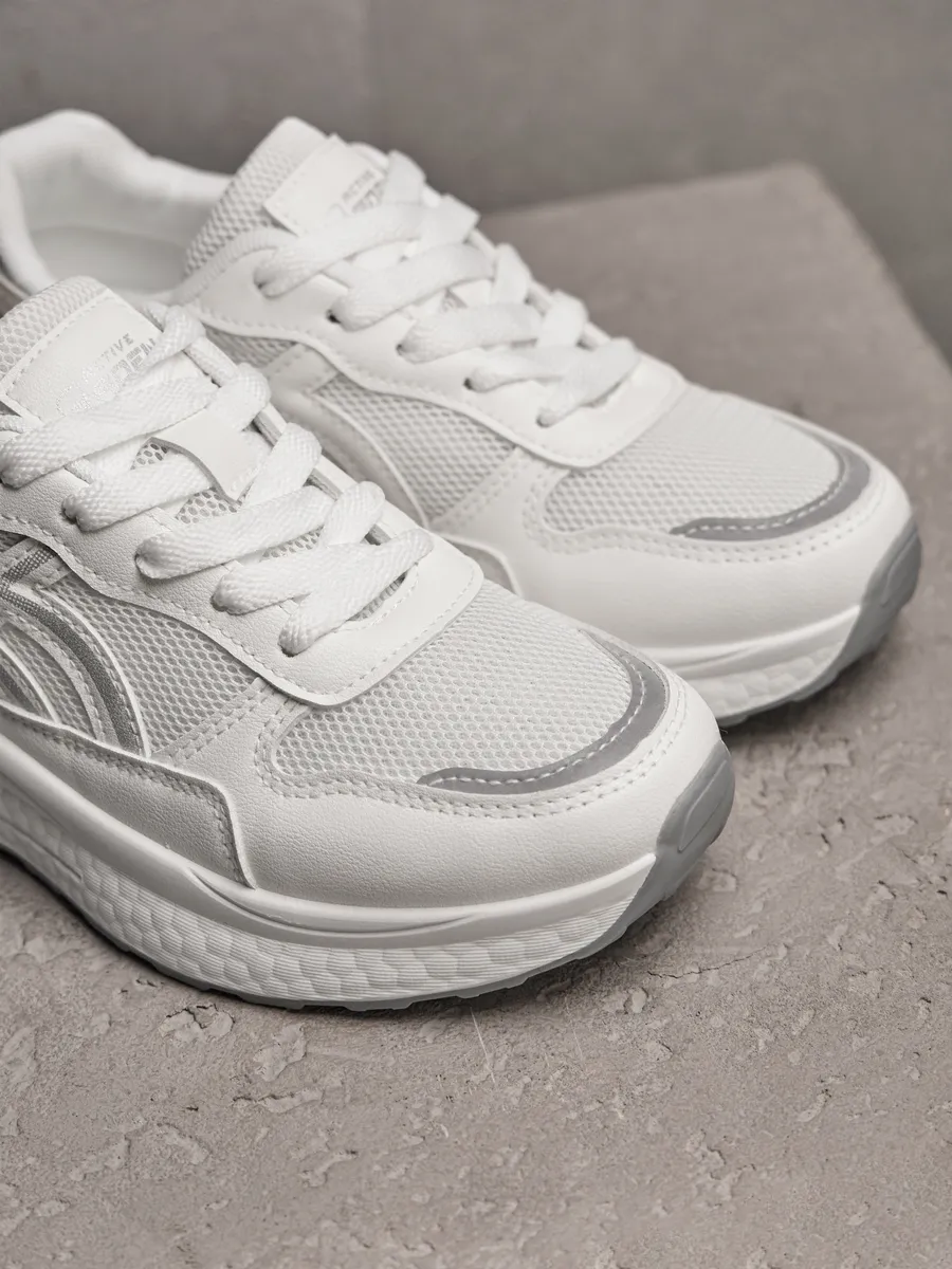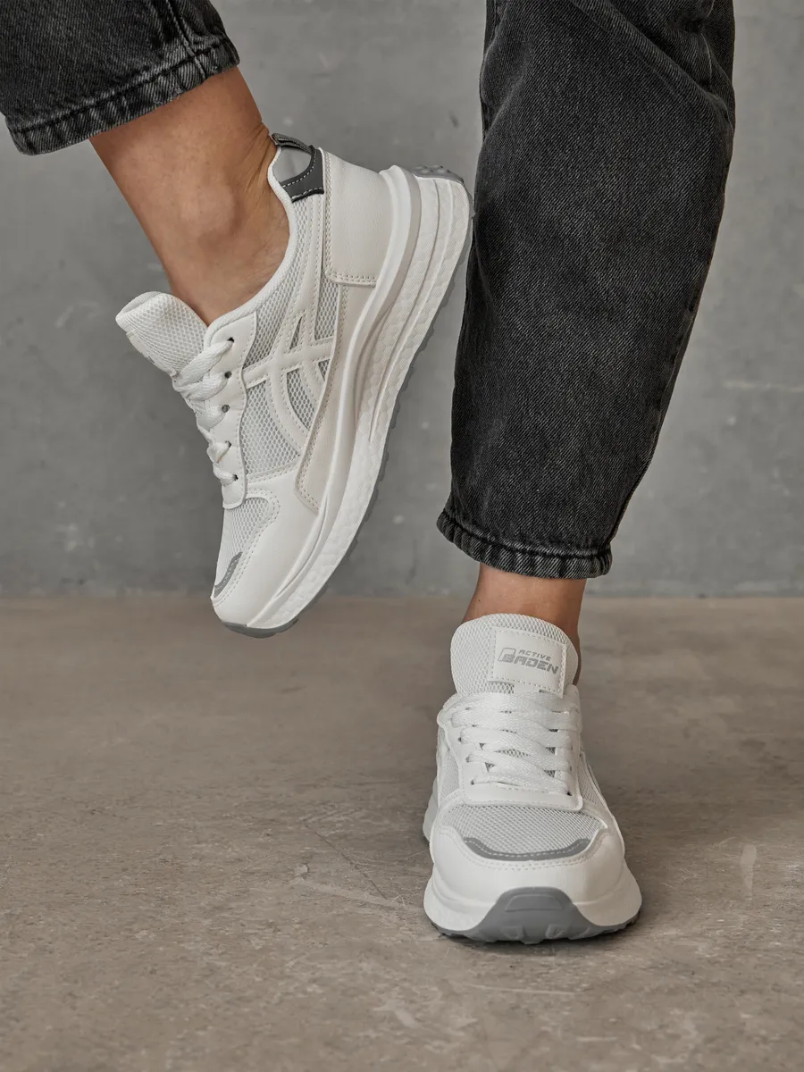 Легкие белые кроссовки маломерят на 1 размер и хорошо подходит на ногу средней и небольшой полноты (7). При выборе размера рекомендуем обращать внимание на длину стельки, указанную в размерном ряде. Выполнены из мягкой натуральной кожи и текстильной сетки - дышащего материала, который быстро принимает форму стопы для максимального удобства. Сетка и подкладка из текстиля обеспечивает хороший воздухообмен даже в жаркую погоду. Имеют мягкую амортизирующую съемную стельку и невероятно лёгкую и гибкую подошву из ПВХ, которая не скользит, прекрасно амортизирует стопу для максимального комфорта и сохраняет здоровье ваших ног, а также поглощает удары стопы при ходьбе, тем самым снимает нагрузку с позвоночника. Так же кроссовки оснащены светоотражающими элементами, в виде вставок.