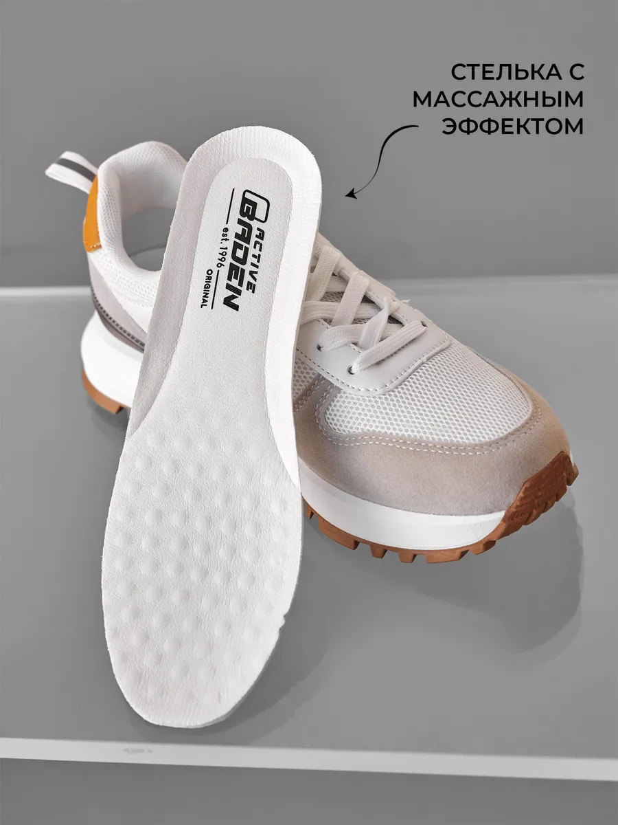 Надёжная шнуровка обеспечивает удобную фиксацию и позволяет регулировать плотность посадки. Кроссовки отлично подходят даже для широкой ноги, не сдавливая стопу и обеспечивая естественное движение. Съемная мягкая стелька и внутренняя подкладка создают дополнительный комфорт, а толстая подошва придаёт обуви стильный акцент и защищает ноги от ударных нагрузок при ходьбе.