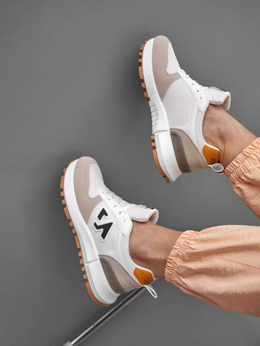 Дизайн кроссовок сочетает элегантную простоту и спортивную эстетику, делая их универсальным элементом гардероба. Они выполнены в белом цвете, что позволяет легко комбинировать их с различными стилями одежды. Они гармонично дополнят кэжуал-образ, отлично подойдут к джинсам, брюкам, шортам и даже лёгким платьям, добавляя нотку спортивной элегантности.